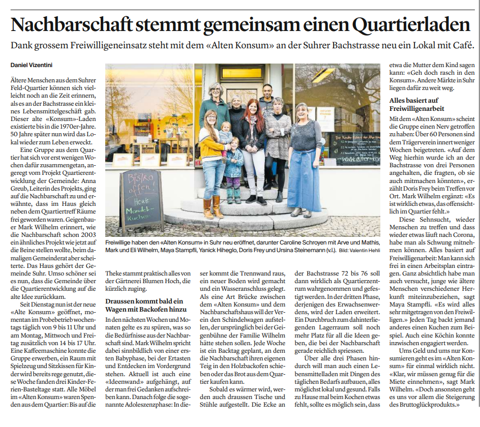 Die Aargauer Zeitung findet den Alten Konsum einen Artikel wert.