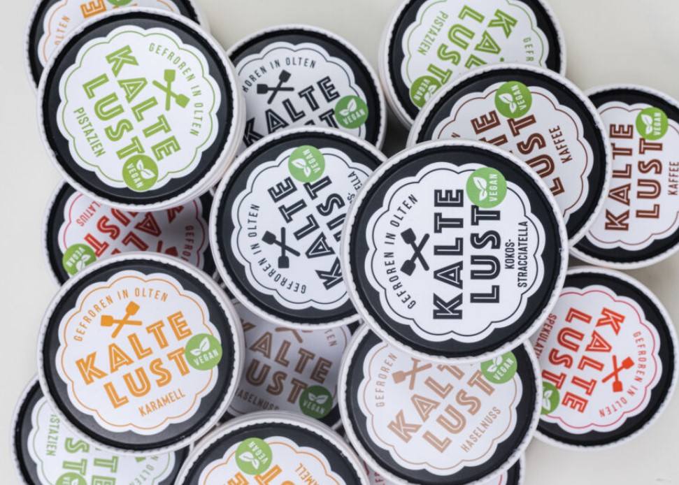 „Kalte Lust“ heisst sie und wird in Olten produziert aus bio-Milch. Selbstverständlich haben wir auch Sorbets im Sortiment und ein veganes Pistazien-Glace.