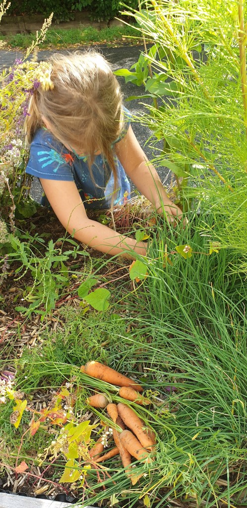 Die Kinder vom Mittwochs-Kindercafé haben die Rüebli aus dem Hochbeet vor dem Alten Konsum geerntet und fröhlich geknabbert.