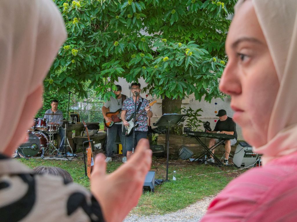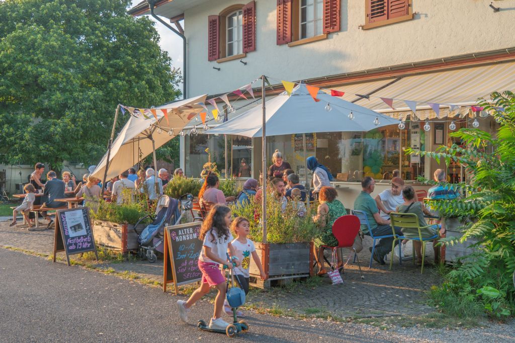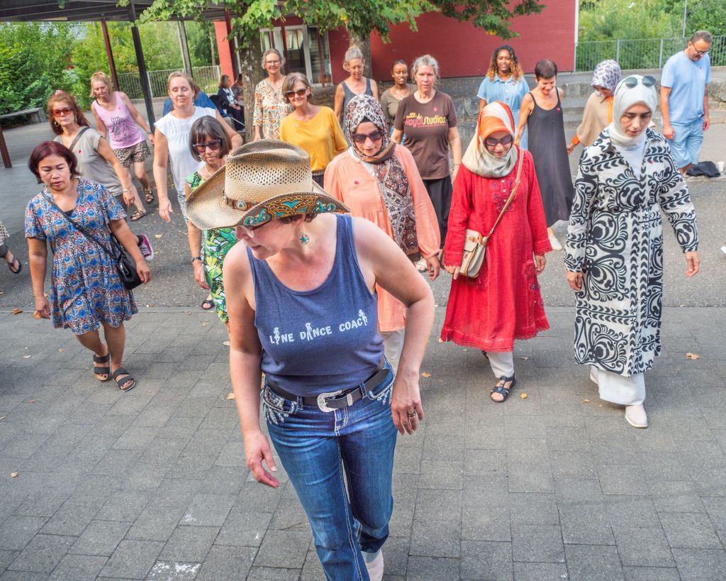 Linedance beim Schulhaus, die Band „Seldom“ unterm Kastanienbaum, Pizza aus dem Holzbackofen, Lieder aus der Türkei und der Ukraine, kurze Ansprachen vom Vorstand (Maya Stampfli und Doris Frey) und der Quartierentwicklung (Anna Greub)