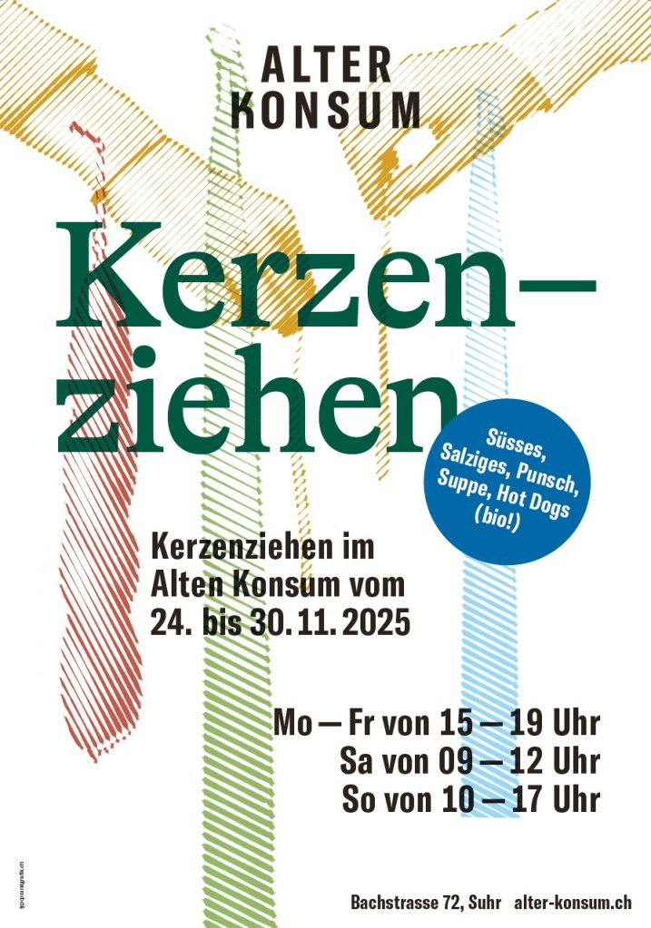 Und kommende Woche geht es im Alten Konsum weiter! Am Montag noch einmal Bienenwachskerzen, ab Dienstag Nachmittag auch farbige Kerzen: