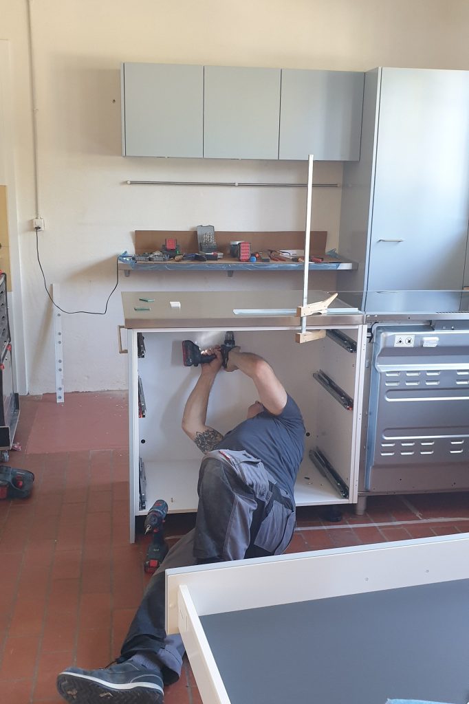 Und das kann stattfinden, weil wir endlich fertig eingerichtet sind in der Küche!